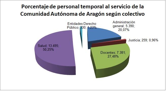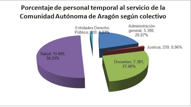 Aunque la Ley establece que la temporalidad en todas las administraciones públicas no puede superar el 8%, según los últimos datos oficiales del Gobierno de Aragón, del pasado junio, de las 57.047 personas al servicio de la Comunidad Autónoma de Aragón eran temporales 26.855 (47,08%). Entre las administraciones locales, los datos son similares y según cálculos sindicales, la temporalidad en el Ayuntamiento de Zaragoza es del 24% y en el de Huesca llega al 30%.