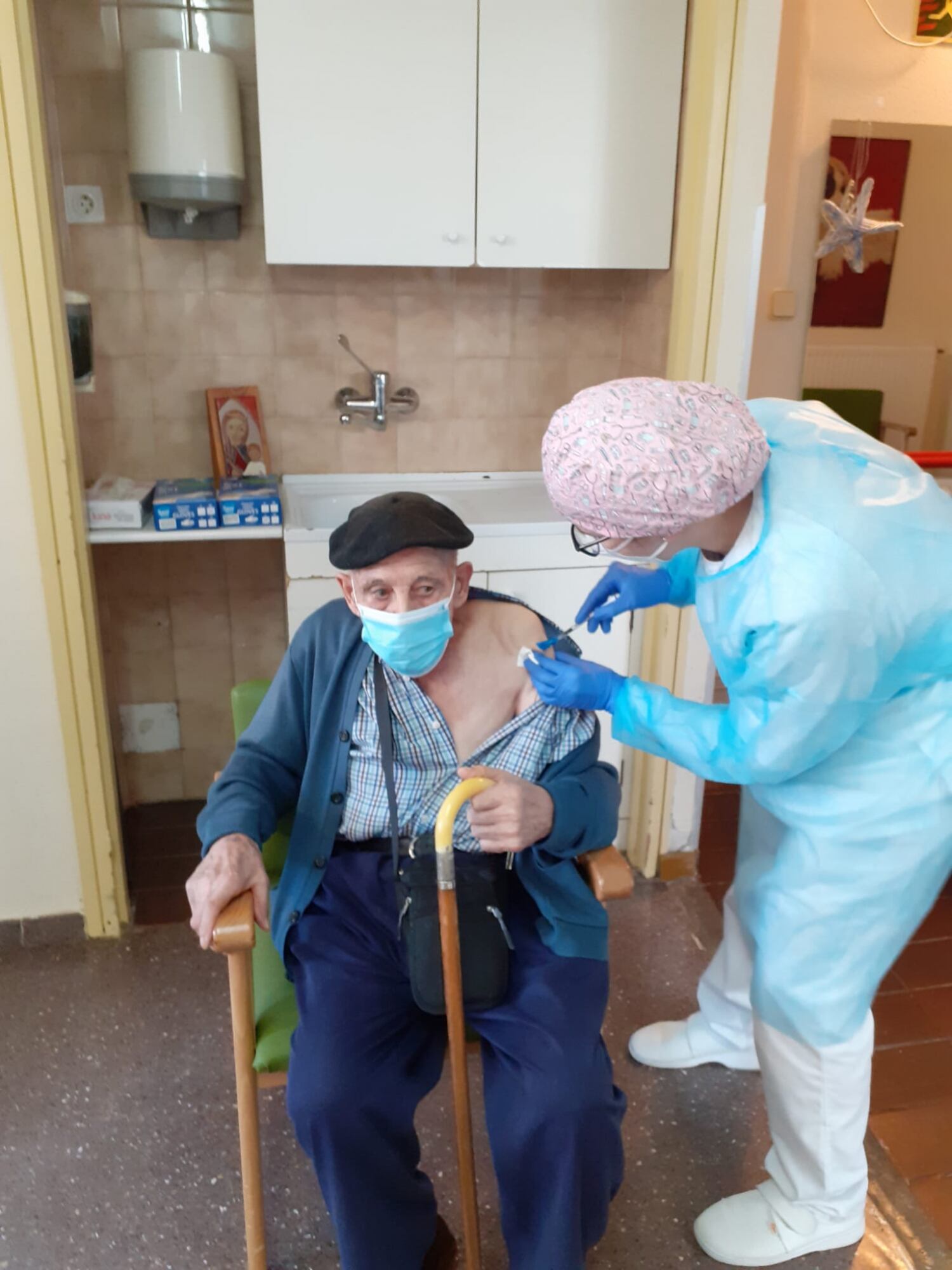 Los usuarios de la residencia comarcal de Tamarite reciben la primera dosis de la vacuna contra la covid-19