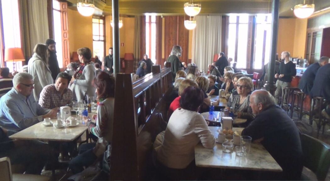 Por 3,5 euros, decenas de oscenses llenan la terraza y el comedor del café