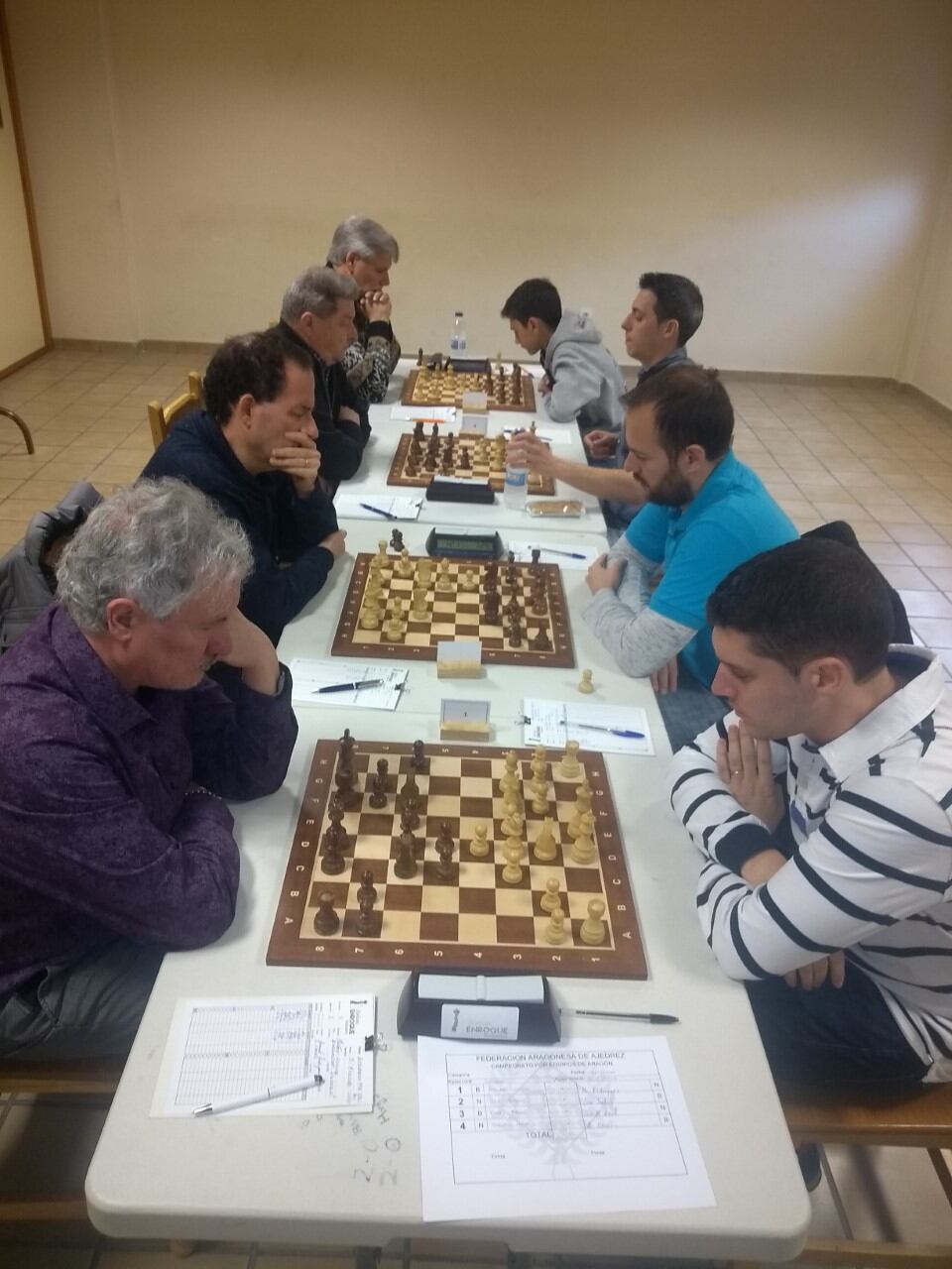 En el grupo A, el Jaime Casas ganó por la mínima en su visita al Helios, con victorias de Juan Luis Ramiro y María Eizaguerri, tablas de Pedro Antonio Ginés y derrota de Javier Fontana. El Jaque perdió por 3,5-0,5 ante El Olivar con tablas de Roberto Cifuentes y derrotas de José Escartín, Pablo Buisac y Andrea Roque.