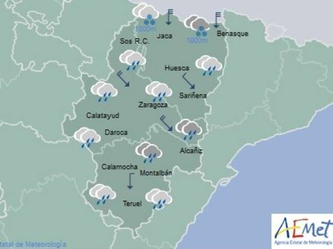 Si el fin de semana el frente fue atlántico, en esta ocasión, las precipitaciones llegan al noreste de España, procedentes del Mediterráneo, especialmente a Cataluña donde caerán unos 100 litros, aunque también tendrán su incidencia en la provincia de Huesca.