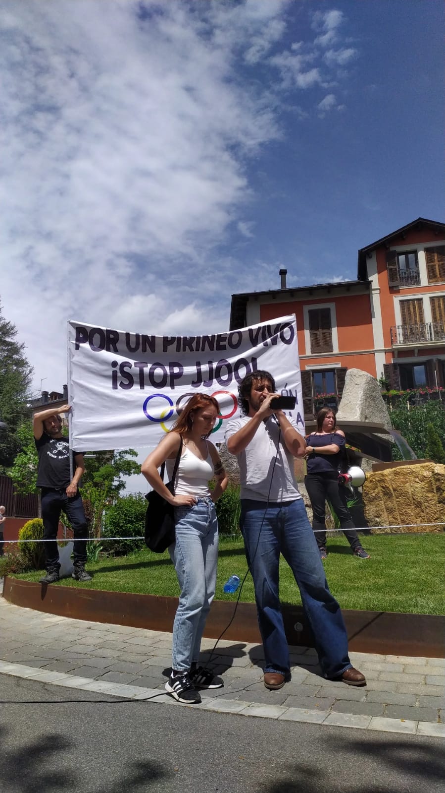 Una protesta convocada por la Plataforma "Stop JJ.OO." de Cataluña, a la que se unían representantes de Aragón, que dicen que esta candidatura "no responde a las necesidades del Pirineo" y que no hace más que "alargar un modelo económico caduco", sin pensar, además, en los problemas socioeconómicos y medioambientales que ya arrastra este territorio y que provocarían "20 días de fiesta".