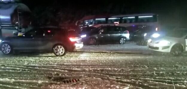 Más de 400 coches parados en el Monrepós por la intensa nevada y el cruce de un autobús