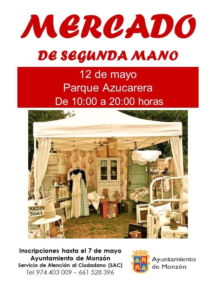La Concejalía de Servicios Sociales de Monzón ha organizado un mercado de segunda mano que se celebrará el 12 de mayo en el paseo de San Juan Bosco, junto al parque de la Azucarera, de 10.00h a 20.00h. y de forma ininterrumpida. Ese fin de semana, la Nave de la Azucarera acogerá la III Feria de Economía y Sostenibilidad.
