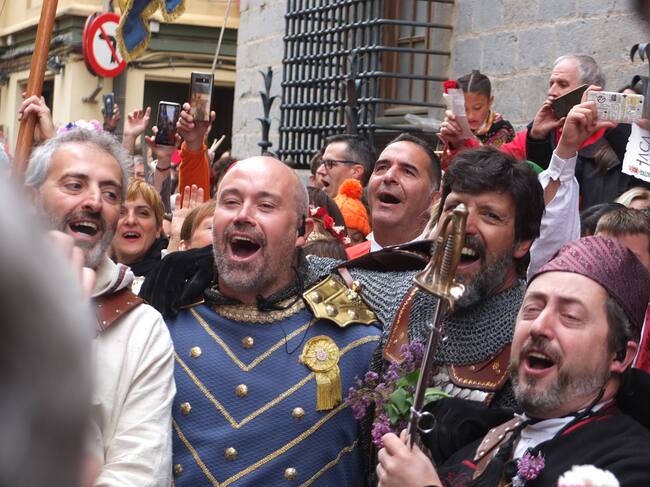 Un año más, miles de jacetanos cantaban al unísono en el día de su Fiesta grande, el Primer Viernes de Mayo. La mañana comenzaba con lluvia y obligaba a suspender la primera parte del desfile pero no ha impedido que miles de jacetanos recibieran al Conde Aznar pasadas las 12 del mediodía y acompañasen al cortejo y escuadras hasta que, a las 14’18 horas, con cielo despejado, sonaban los compases y se escuchaba el “Jaca libre sabe vivir a la sombra del Monte Oroel”. Ha sido una mañana llena de emociones, como la vivida por el Conde Aznar, que disfrutaba de su quinto Himno. La fiesta ha llegado a todo el mundo a través del Diario Digital radiohuesca.com, que retransmitía en directo la calle Mayor desde las 12’20 horas.