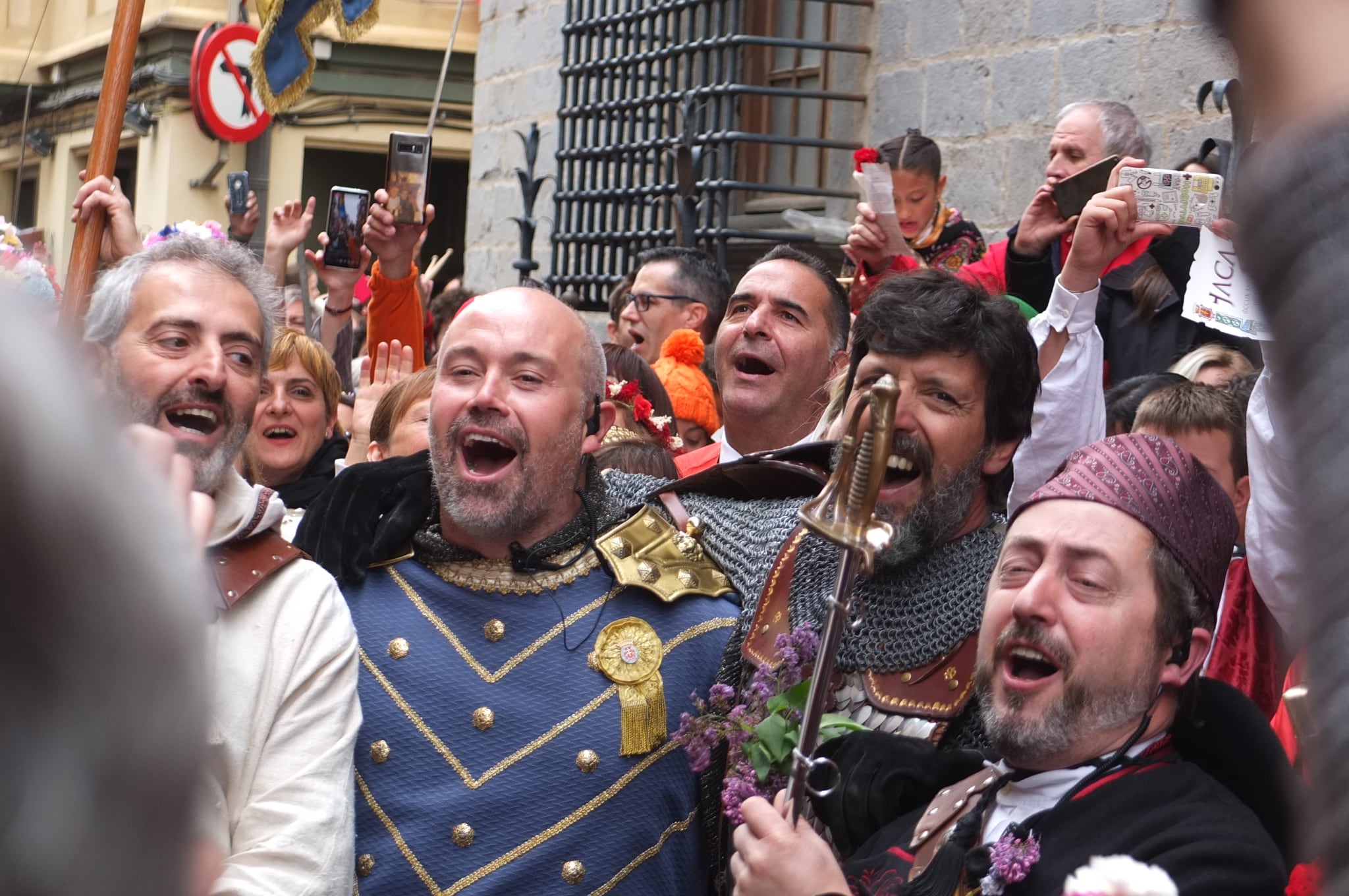 El desfile continuaba para desplazarse hasta el pórtico del Ayuntamiento, donde tenía lugar el esperado y multitudinario canto del himno que contaba con la presencia de miles de personas.