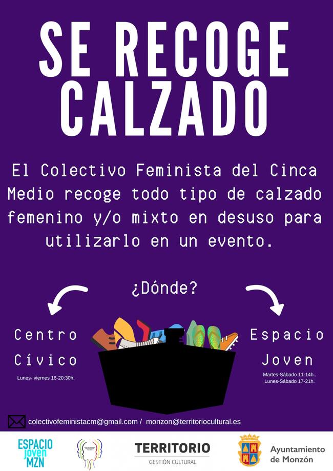 Con este objetivo, el Colectivo Feminista por la Igualdad del Cinca Medio recoge todo tipo de calzado femenino y/o mixto en desuso para utilizarlo en el citado evento.