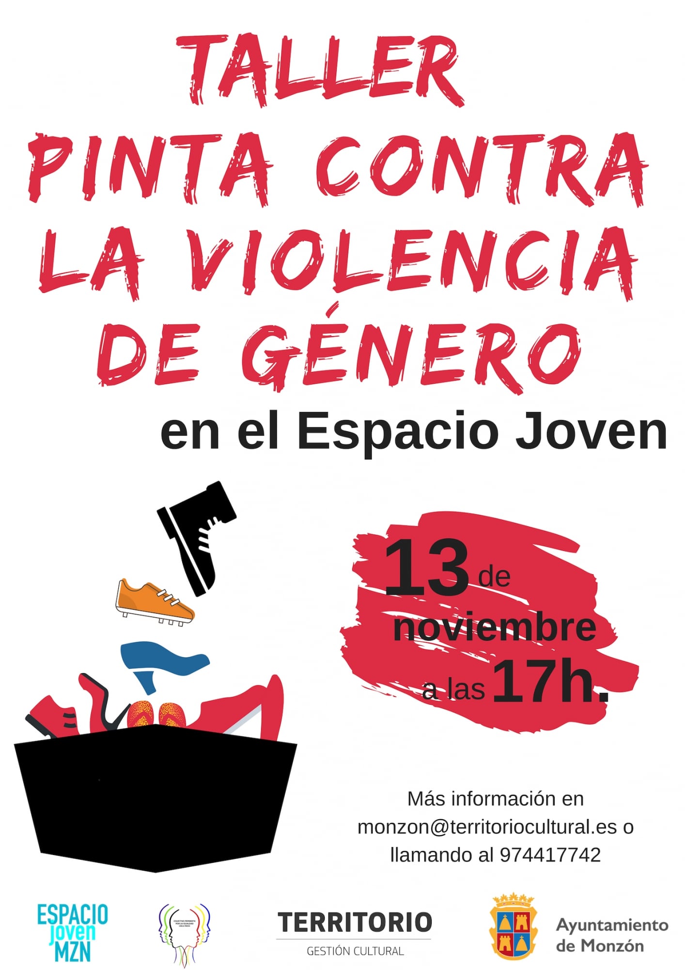 En el taller se pintarán los zapatos que se hayan depositado tanto en el Espacio Joven como en el Centro Cívico durante las semanas previas. Dichos zapatos se utilizarán posteriormente por el colectivo para realizar un evento con motivo del Día contra la Violencia de Género, que se celebra el 25 noviembre.