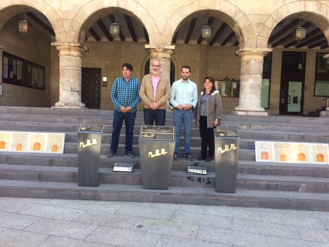 La Plaza Mayor era el lugar escogido para presentar la nueva señalización de la muralla medieval de Monzón, compuesta por tres tótems y ocho placas correspondientes a las puertas. Los elementos han sido creados por la empresa Publyarte.