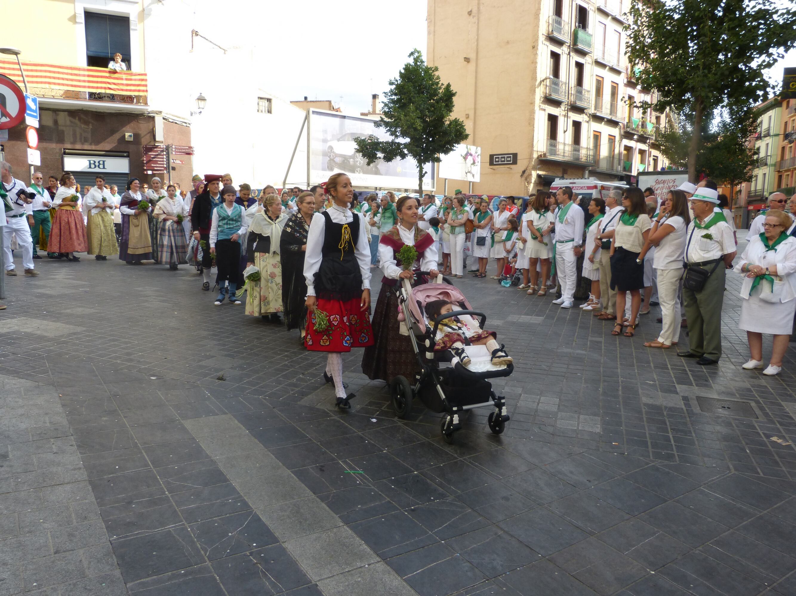 Cientos de oscenses participaban este viernes en la procesión que recorre el centro de Huesca en la mañana del día 10. Tras la actuación de los danzantes, y el homenaje que este año dedicaba la Cofradía de San Lorenzo al Maestro Sampériz, el busto del patrón salía de la basílica de San Lorenzo por primera vez este año. Su recorrido habitual le llevaba por las calles del Casco Antiguo hasta la plaza de la Catedral y el Ayuntamiento. En su regreso participaban numerosos oscenses y visitantes ataviados con el traje regional. Elegían los mejores ropajes, la vestimenta para un día señalado.