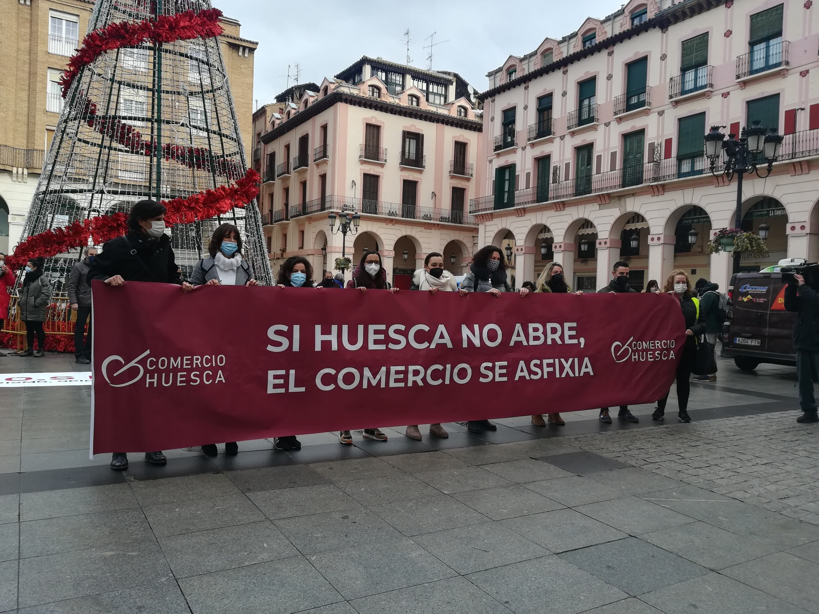 La Asociación de Comercio y Servicios de Huesca salía por primera vez a la calle para protestar por las nuevas restricciones en los horarios de cierre de comercios y por el cierre perimetral de Huesca capital. Exigían que no se use la tabla rasa a la hora de tomar decisiones, aportaban los datos de contagios en la provincia y aunque aseguraban que lo primero es la salud pública, insistían que con estas medidas "se está asfixiando al comercio local".