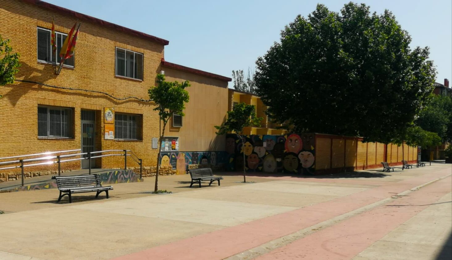 Estos bancos se retiraron de la plaza Navarra y, tras su restauración, se les ha dado ahora una nueva ubicación contando con las indicaciones del centro escolar.