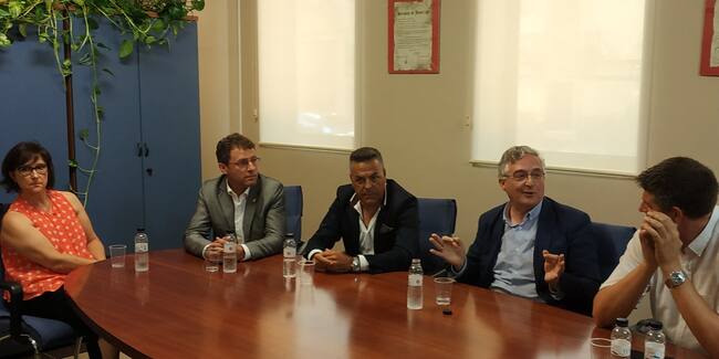 En la reunión habida en el Ayuntamiento también asistían alcaldes de la zona y el presidente de la Comarca del Cinca Medio, Miguel Aso.