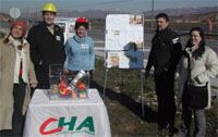 Los candidatos de CHA al Congreso, Eduardo Pueyo y Merche García, acompañados por el Secretario Territorial de CHA, Salvador Ariste, y militantes de CHA han sido los encargados de colocar esta primera piedra, mediante la que la formación ha querido denunciar que el Partido Popular se olvida de las verdaderas necesidades de los altoaragoneses.