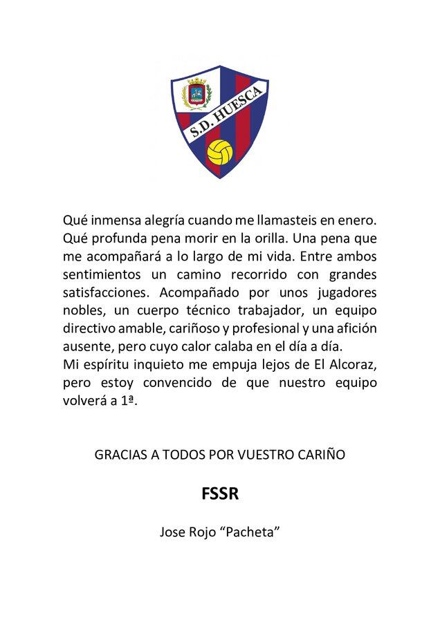 Pacheta no continuará como entrenador de la SD Huesca