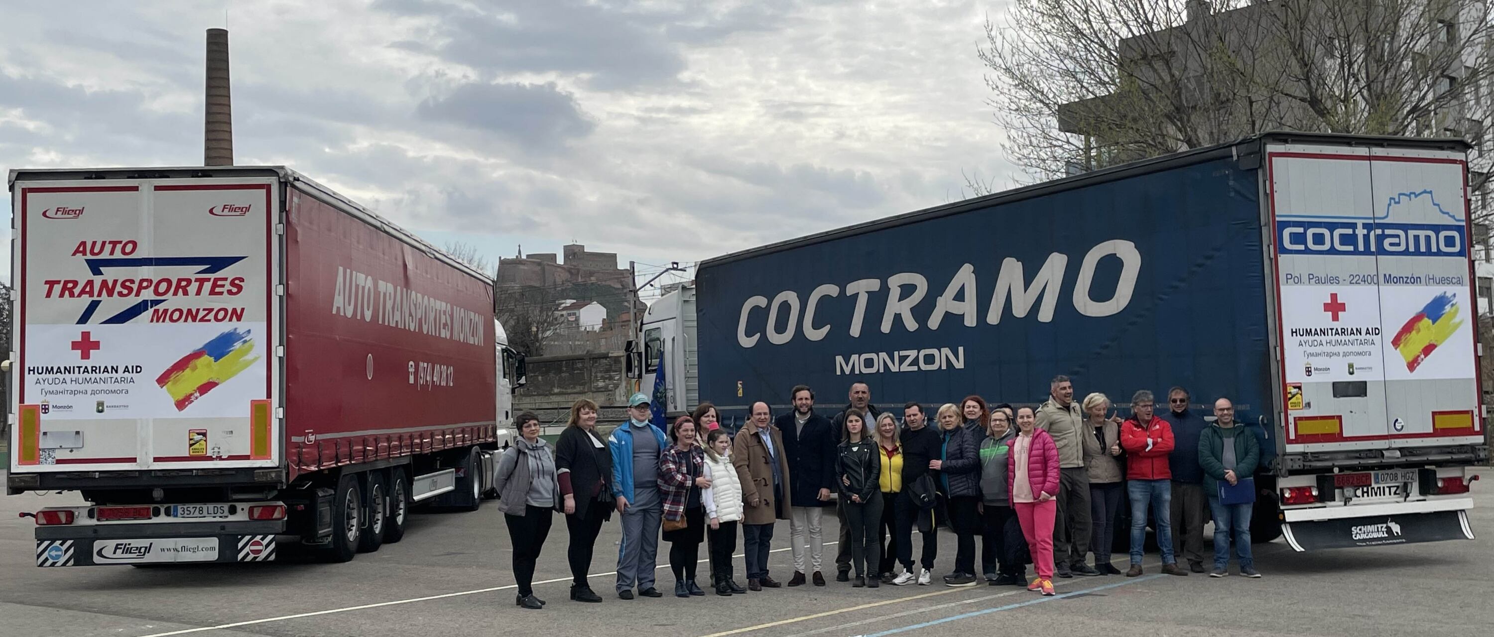 Los dos camiones pertenecen a Coctramo y Autotransportes Monzón. Recorrerán más de 3.000 kilómetros entre Monzón y la frontera de Rumanía con Ucrania, en un viaje de 4 días a través de Francia, Italia, Eslovenia, Hungría y la propia Rumanía.