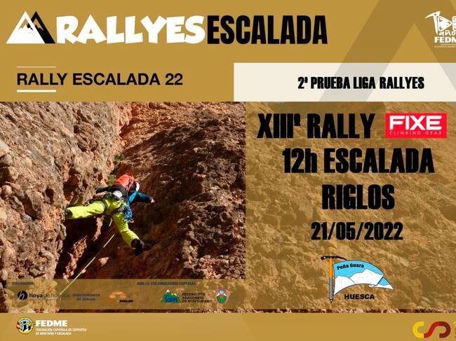 Este sábado 21 de mayo, el club Peña Guara de Huesca, con la colaboración de la Comarca de la Hoya de Huesca, el Ayuntamiento de Riglos, el Refugio de Riglos, Federación Aragonesa de Montañismo y de la FEDME, organiza una nueva edición del Rally de Escalada de Riglos; el XIII Rally FIXE 12 horas Escalada de Riglos.