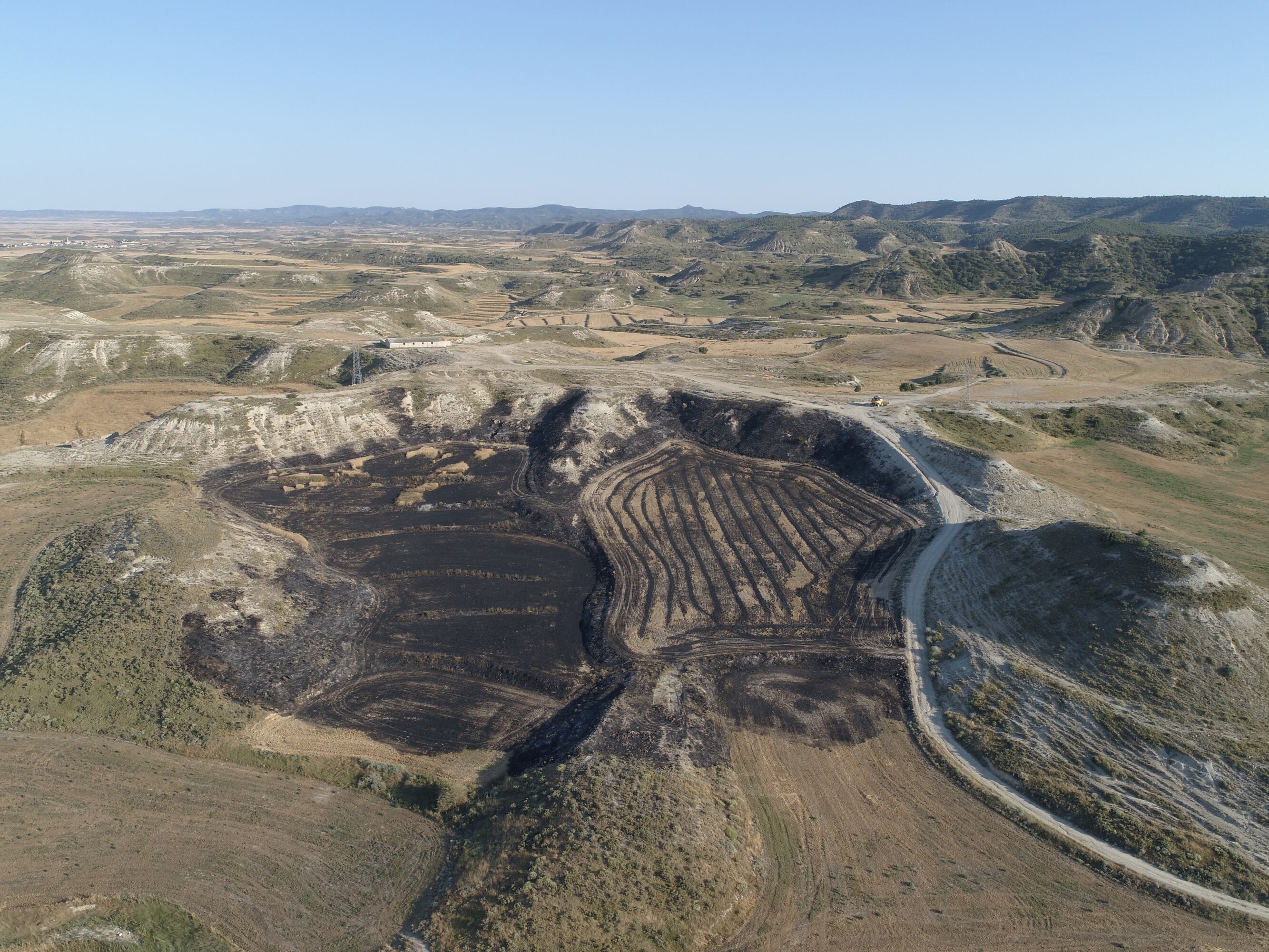 Una cosechadora ha provocado un pequeño incendio cerca de la localidad monegrina de Robres afectando a una parte pequeña de cultivo y una ladera de matorral colindante sin afecciones forestales.
