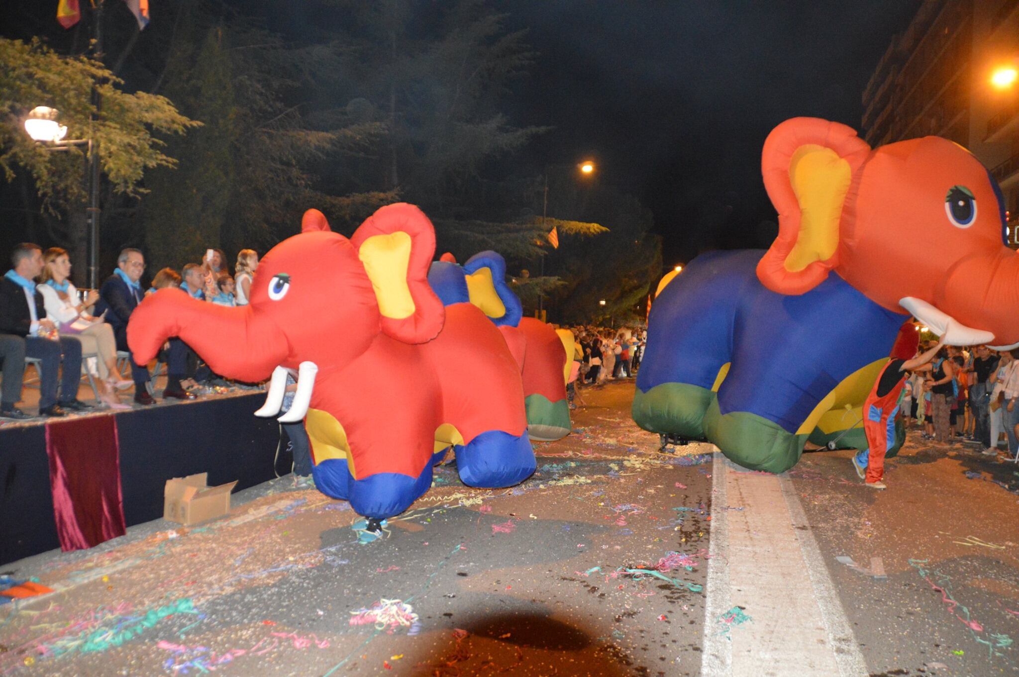 El desfile contaba con 5 batucadas: Sambala, Serós, Ritmaos, Trokobloco y Timbalao. Además de 5 charangas: Los Helvéticos, Los Lirolos, Los Metralletas, El Pincho y Fun Band; y 5 grupos de animación: Tren Turístico, Magic Circus-Civi; Combo Elefantes, Pep Callau- La Traca y Domadores de Fuego. La Banda Municipal "La Lira" era la encargada de abrir el desfile.