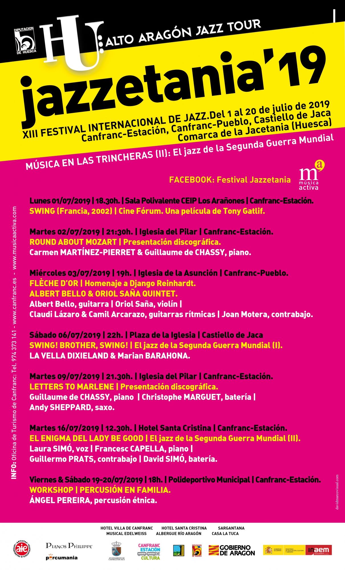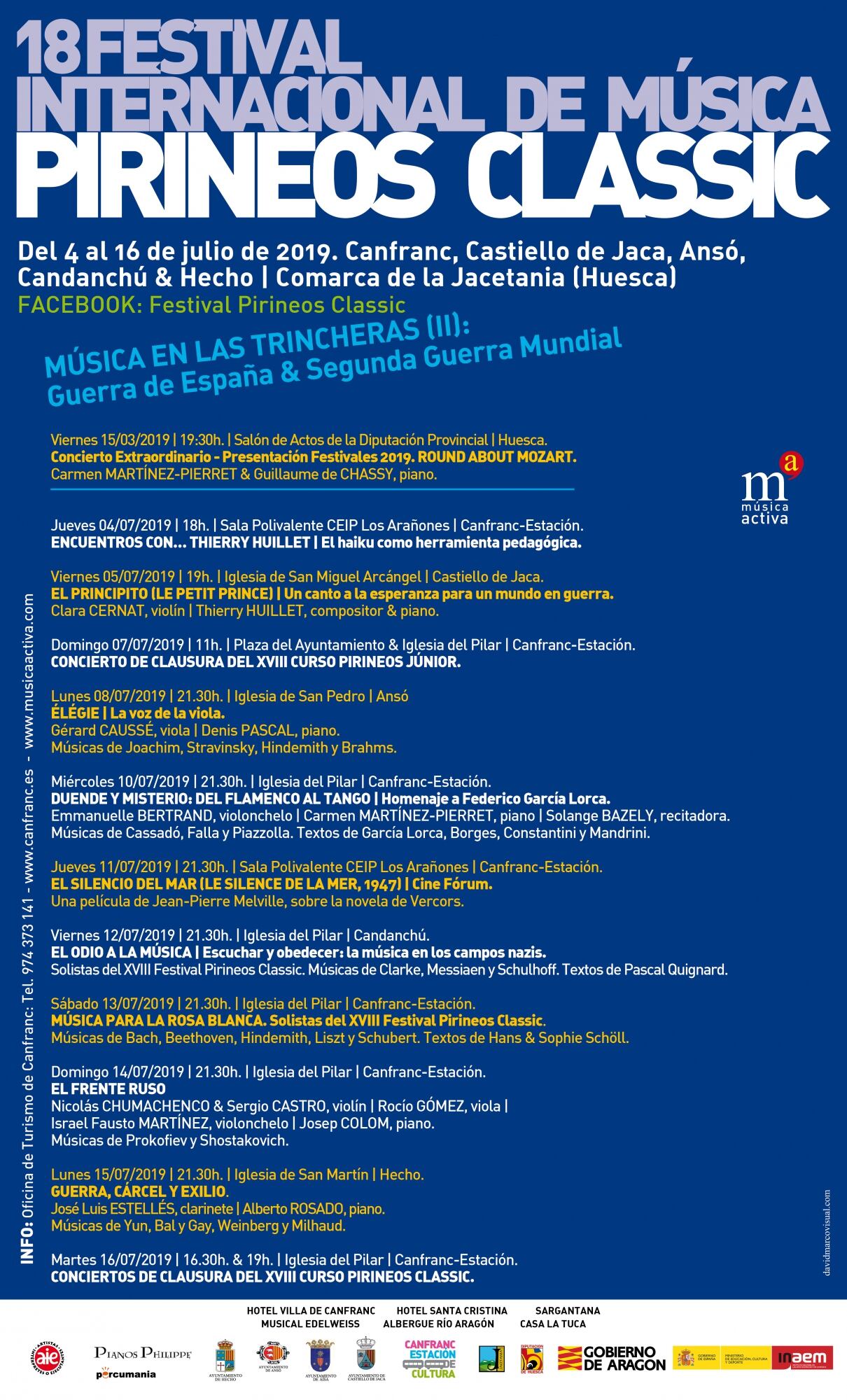 La XVIII edición de los cursos internacionales Pirineos Júnior & Classic llenará Canfranc de jóvenes músicos. Este año esperan batir su record de participación superando los 275 alumnos del año pasado, muchos de ellos acompañados de sus familias por lo que esta cita cultural volverá a ser un revulsivo económico para el sector hotelero de Canfranc y comarca. Pero los festivales Pirineos Classic y Jazzetania también programan conciertos abiertos a todo el público. Del 1 al 20 de julio la música inundará la Jacetania.