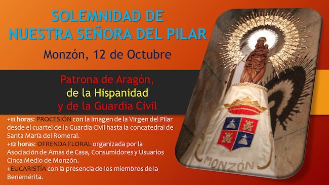 La parroquia de Monzón, la Asociación de Amas de Casa y la Guardia Civil coordinan la celebración de los actos del día 12 de octubre para celebrar la festividad de la Virgen del Pilar, patrona de la Hispanidad y la benemérita.