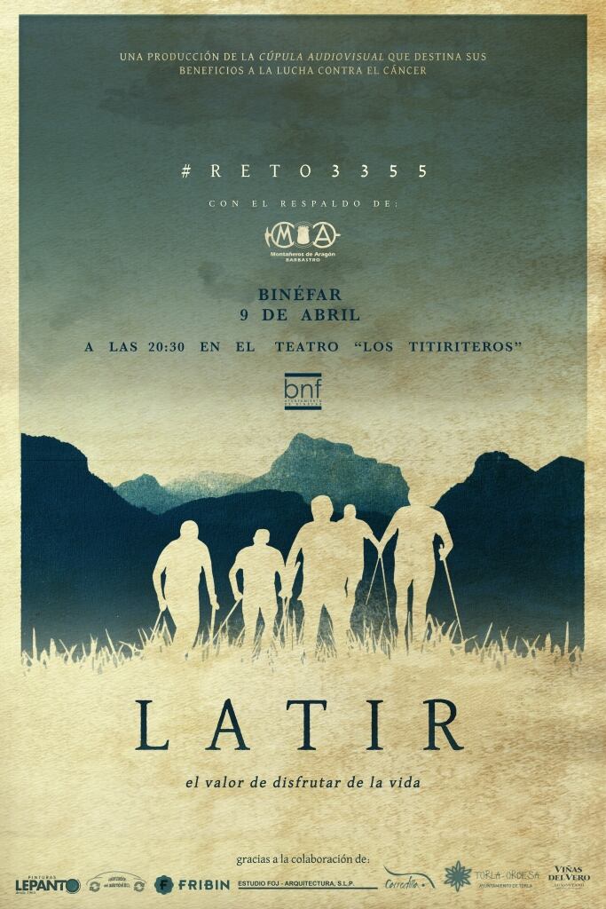 La sala de cine del Teatro Municipal Los Titiriteros de Binéfar estrenará el día 9 de abril, a las 20.30 h, el documental solidario “Latir, el valor de disfrutar la vida”, dirigido por el binefarense Adrián Foj junto con Carmen Ramis y Miguel Ángel Ferreiro. La proyección de este filme, cuya recaudación irá íntegramente a la lucha contra el cáncer, abre la programación cultural de abril en Binéfar.