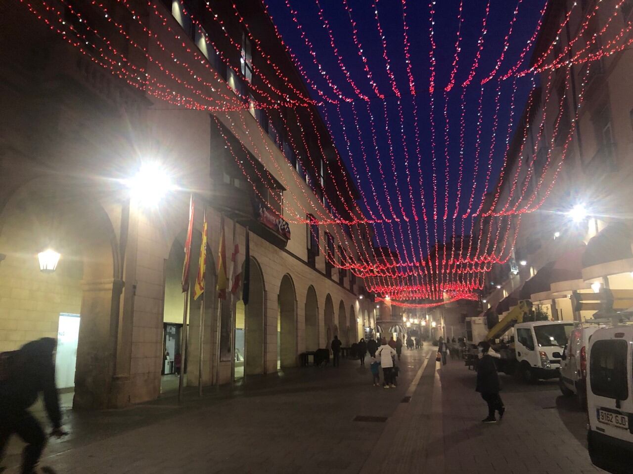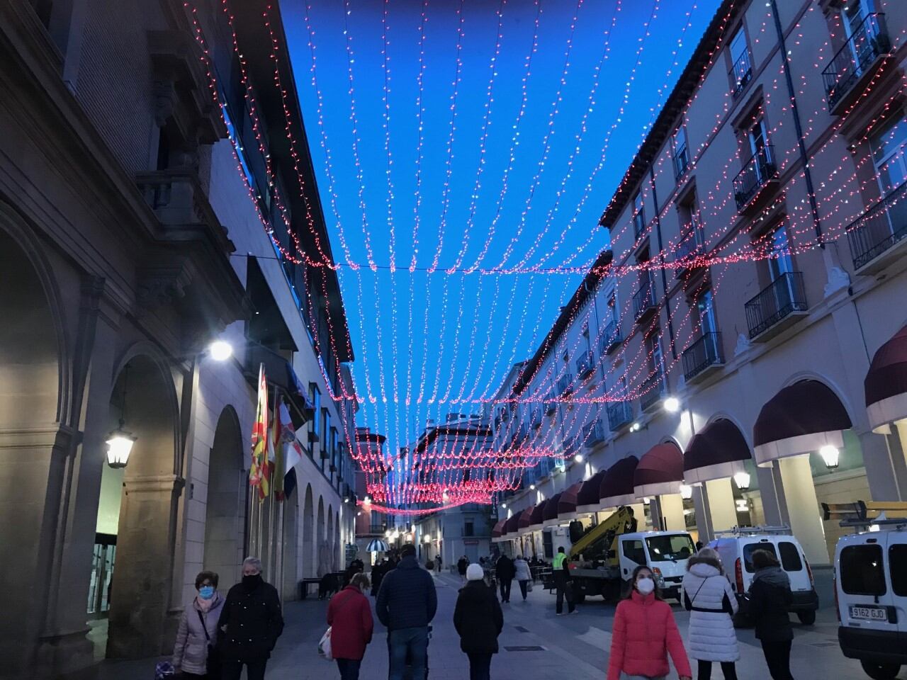 Si paseaste por Huesca durante el miércoles por la tarde seguramente verías rojo, lila y otros colores que este año iluminarán la capital altoaragonesa. Técnicos del Ayuntamiento han estado realizando pruebas y ultimando detalles para el encendido de las luces de Navidad, que tendrá lugar el próximo viernes, 4 de diciembre. No se va a realizar un acto especial como otros años, ya que se quiere evitar aglomeraciones.