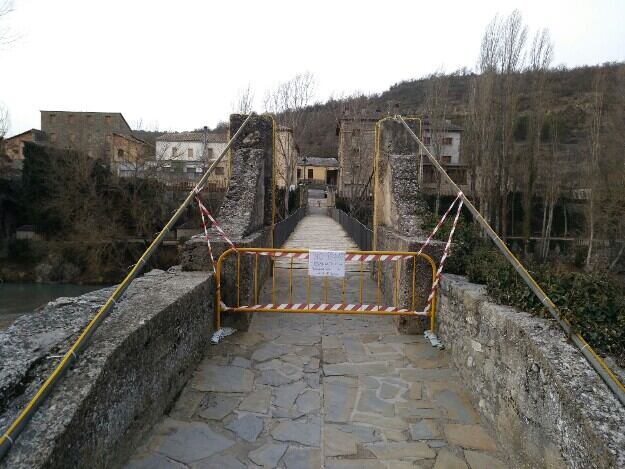 El Ayuntamiento de Puente de Montañana decidía cerrar por seguridad el puente colgante o de la palanca que une el casco antiguo de la localidad con la N-230, atravesando el Noguera Ribagorzana. La decisión se tomaba por unanimidad de todos los concejales tras conocer el resultado de la revisión que el propio alcalde, Xavi Bergua, hacía de esta instalación, durante el fin de semana, y en la que comprobaba el mal estado de las sirgas, anclajes y estructura, hallando una de las sirgas oxidada y, prácticamente, deshecha. Se puso esta información en manos de técnicos de DPH y, siguiendo sus consejos, se tomó la decisión, este lunes, de cerrar de inmediato el puente. Permanecerá así hasta que se pueda dar solución al problema.