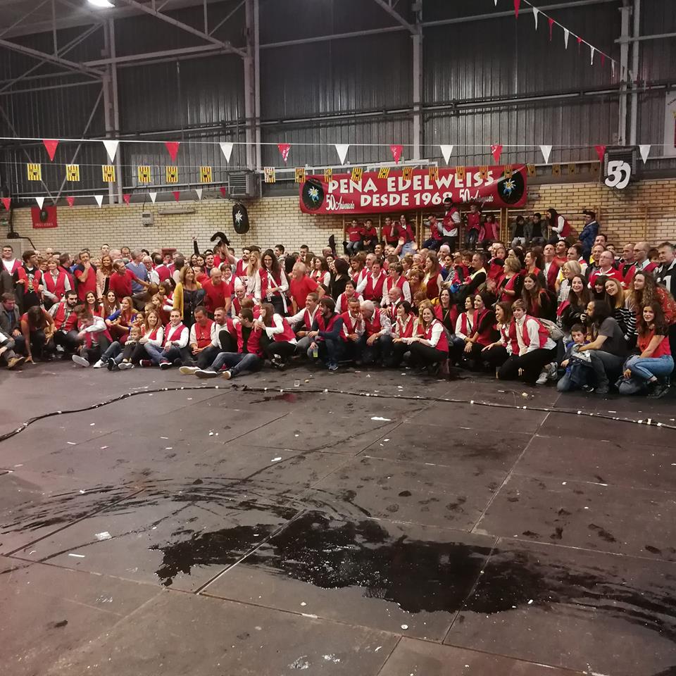 Este sábado se presenta con una jornada especial, que cuenta a las 14:00 horas con la comida popular en el Polideportivo del Puente Sardas, donde se realiza el concurso de postres, que luego comerán los asistentes. A esa misma hora este año se realiza la comida del “50 Aniversario” de la Peña Edelweiss, con sus sorpresas especiales. Al finalizar la misma baile y desfile por las calles del Puente Sardas para terminar en el polideportivo con un tiro de soga, “como los de antes”.