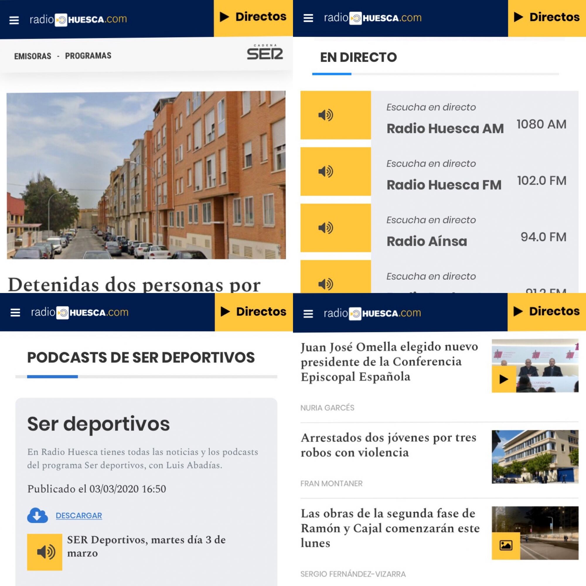 Las galerías de fotos, las necrológicas y las informaciones de actualidad son los contenidos más consultados por los usuarios de RadioHuesca.com. Muchos de ellos acceden a la web de forma directa, si bien es muy relevante la navegación que deriva de las redes sociales de Radio Huesca, a través de Facebook, Twitter, Instagram y a través del canal de Youtube de Huesca Televisión.