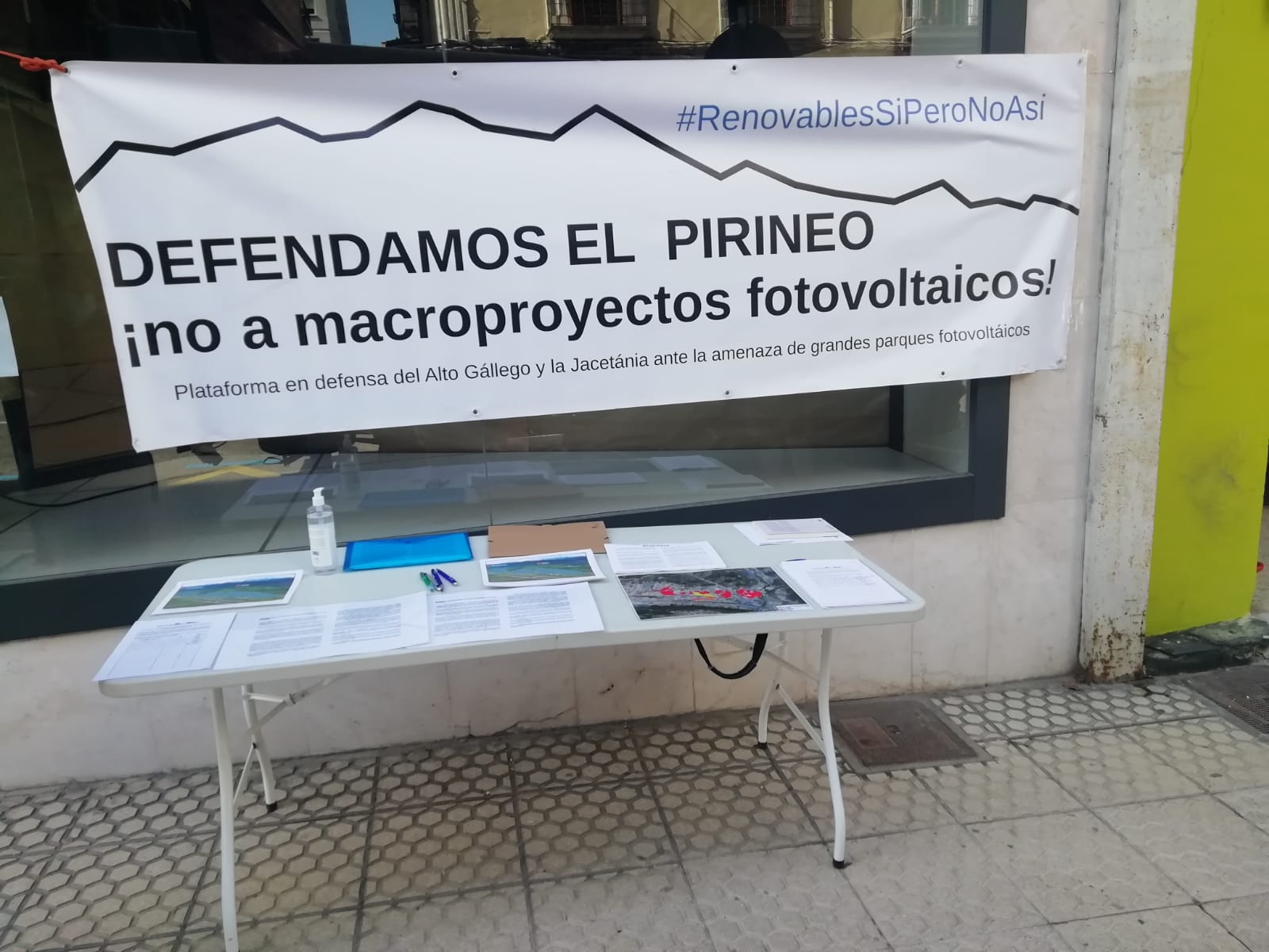 La Plataforma en Defensa del Paisaje y la Vida en el Pirineo ha colocado una mesa informativa en Sabiñánigo