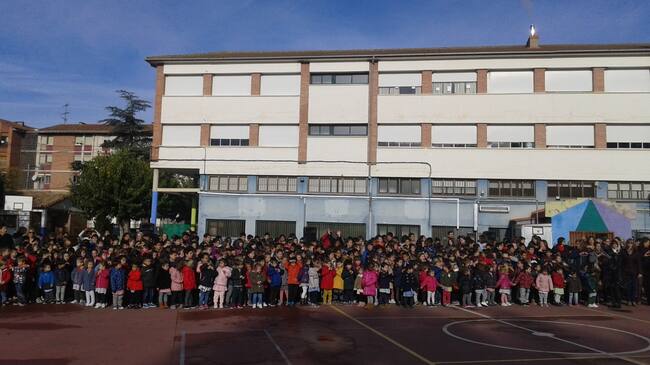 Emociones y recuerdos en la celebración del 50 aniversario del C.P. Alto Aragón de Barbastro, cuyo acto central ha tenido lugar este lunes en el patio del colegio con la participación de profesores, alumnos, exprofesores, familias, el alcalde de Barbastro Fernando Torres y el concejal de educación Luis Domínguez, entre otras autoridades.