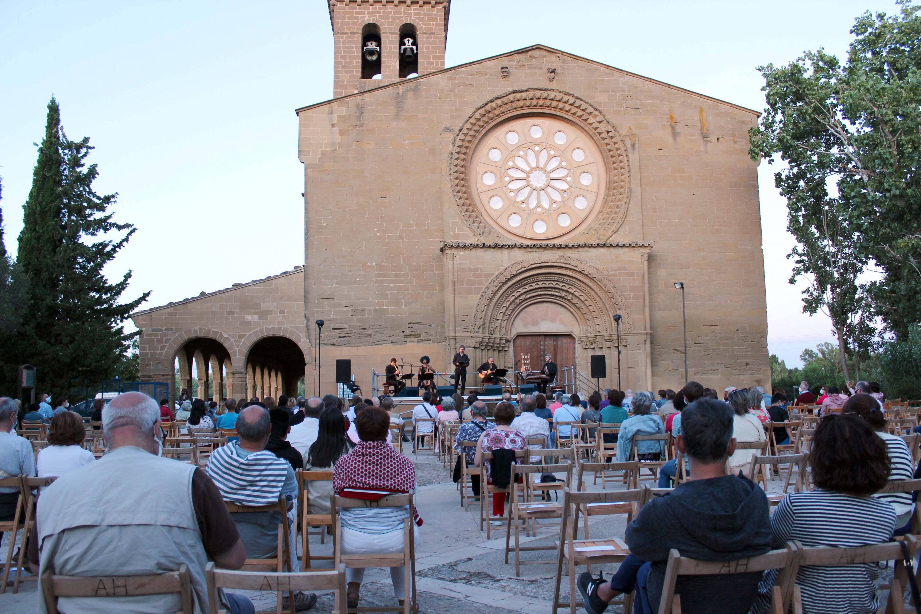 La tarde del domingo tuvo lugar en Huesca otro de los esperados conciertos organizados por la Diputación Provincial de Huesca desde el XXX Festival Internacional en el Camino de Santiago. Esta vez fue el turno de Eloqventia y se celebró en el exterior de la Ermita de Nuestra Señora de Salas. Alejando Villar, director de la formación, comentó que les hacía especial ilusión presentar el programa Poder a Santa María, de Cantigas de Alfonso X el Sabio, en el mismo lugar que sirvió de inspiración. Una selección de ocho piezas dedicadas a la Virgen de Salas, y cuatro estampidas, que, según explicó, es la forma instrumental por excelencia del Medievo.