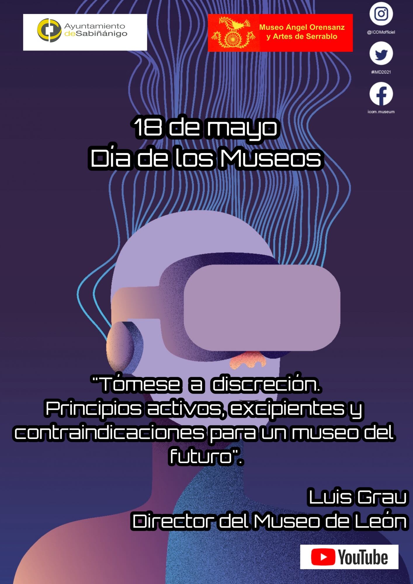 El próximo 18 de mayo se celebrará en todo el mundo el Día de los Museos bajo el lema “El futuro de los museos: recuperar y reimaginar”. Para esta edición, el Consejo Internacional de los Museos (ICOM) invita a los museos, sus profesionales y comunidades a crear, imaginar y compartir nuevas prácticas de (co-) creación de valor, nuevos modelos de negocio para instituciones culturales e innovadoras soluciones para los desafíos sociales, económicos y ambientales del presente. Esta conferencia se podrá seguir en el canal de youtube del museo a partir del día 18.