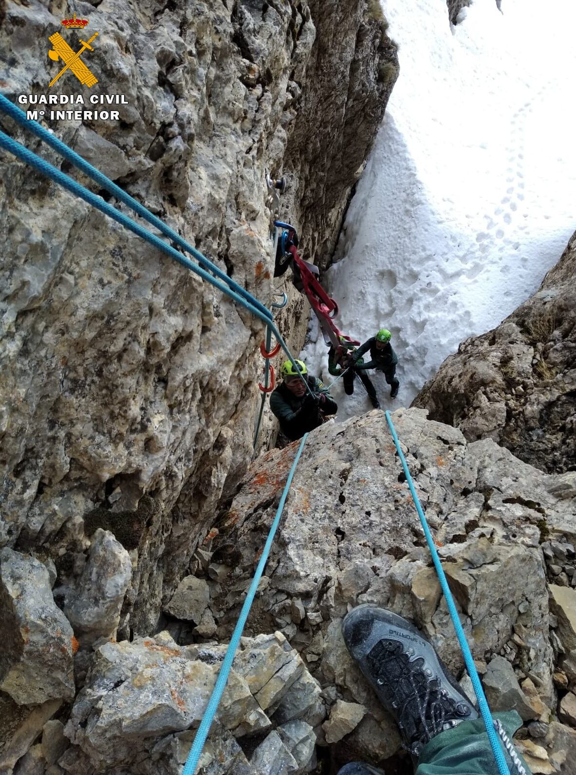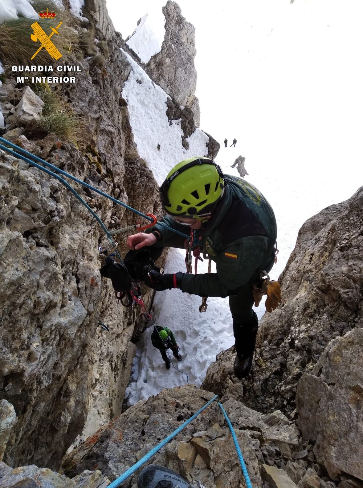 Desde hace casi 25 años, la Guardia Civil colabora con el Gobierno de Aragón y la Fundación para la conservación del Quebrantahuesos (FCQ) en la monitorización de individuos y rescate de puestas (embriones) en situación crítica de esta amenazada especie. En esta ocasión Especialistas de Montaña de la Guardia Civil de Jaca se desplazaron junto con agentes de protección de la Naturaleza del Gobierno de Aragón y de la FCQ hasta una zona en la comarca de la Jacetania a la que accedieron después de caminar 6 kilómetros con un desnivel de 800 metros, todo ello para acceder hasta un nido que se encontraba en una repisa de una pared a unos 15 metros de altura.