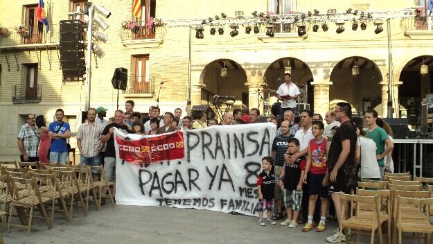 A preguntas de los periodistas, Millera también explicaba que habían denunciado el impago de las nóminas ante el Juzgado de lo Social, y que el juicio tendrá lugar a principios de octubre. Una gran pancarta en la que se podía leer “Prainsa paga ya”, presidía esta concentración, a la que sumaban dos centenares de personas, entre amigos y familiares de los trabajadores, políticos y demás montisonenses que querían mostrarles su apoyo.
