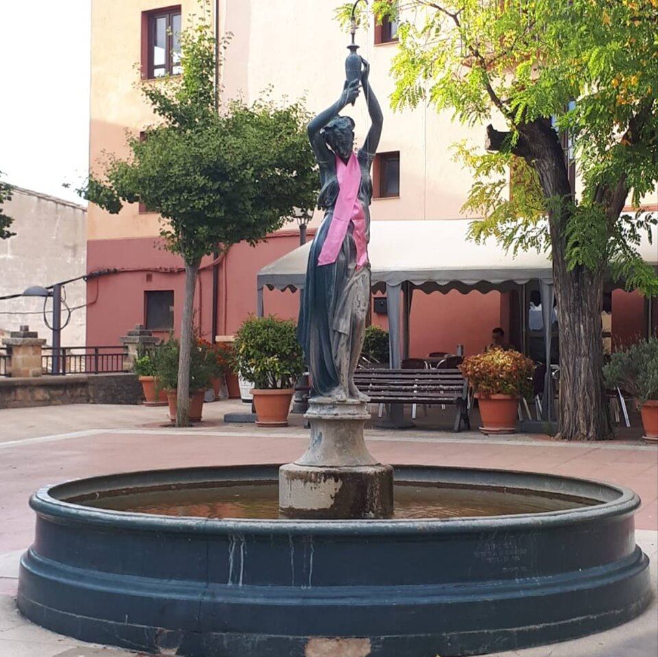 Por lo que respecta a Benabarre, las mujeres de la AMYC Valdeflores han ‘vestido de rosa’ varios árboles en la plaza Mayor, la dama de la fuente y también la biblioteca se ha sumado al rosa.