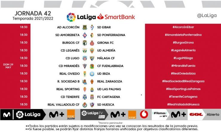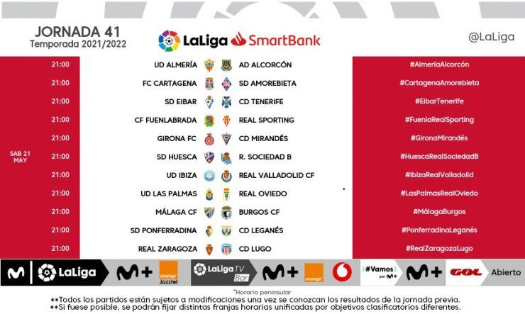 Sábado 21 y domingo 29 de mayo, horarios unificados para las dos últimas jornadas
