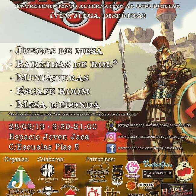 El espacio Joven de Jaca, a través de la concejalía de juventud, pone en marcha este sábado Pyre Games, que pretende ser una alternativa al ocio digital favoreciendo el trabajo en grupo y equipo. Para ello, durante toda la jornada se llevarán a cabo juegos de mesa, juegos de rol o juegos de miniaturas. La actividad se realizará en el espacio joven de Jaca entre las 09,30 hasta las 20 horas.
