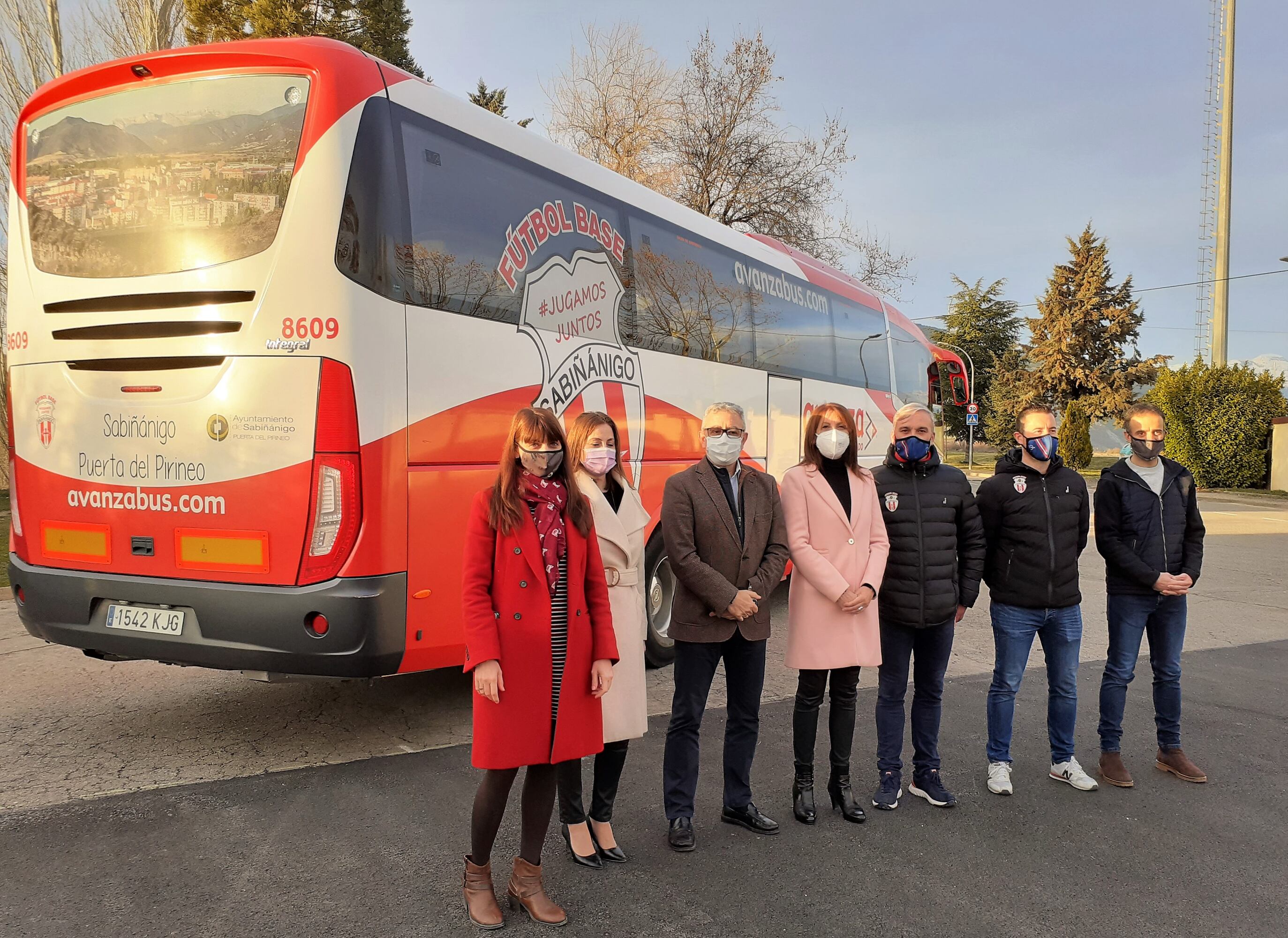 En las inmediaciones del campo del Joaquín Ascaso se ha presentado uno de los autobuses de línea regular con Zaragoza, que lleva el escudo de los equipos del Fútbol Base de Sabiñánigo ambos lados y completándose en la parte trasera del vehículo con una foto de la localidad, el escudo del fútbol serrablés y el anagrama del Ayuntamiento con el lema "Sabiñánigo. Puerta del Pirineo".