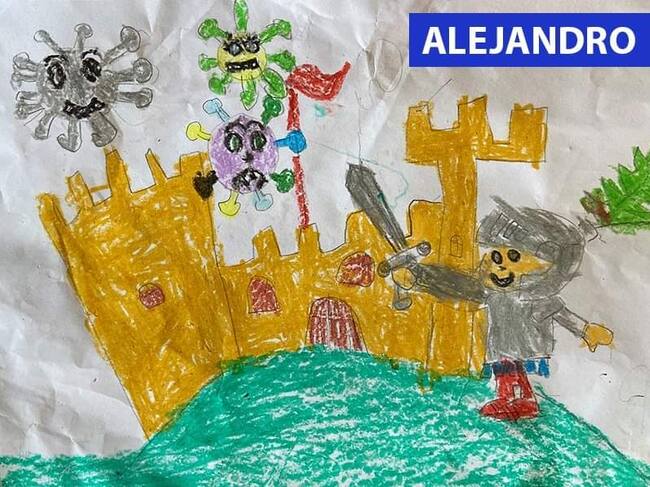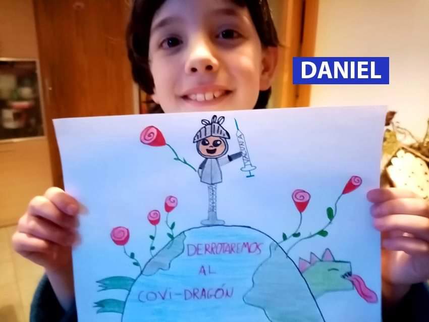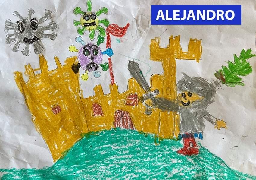 San Jorge, con bata y mascarilla, derrota al Coronavirus en los dibujos de los niños de Jaca