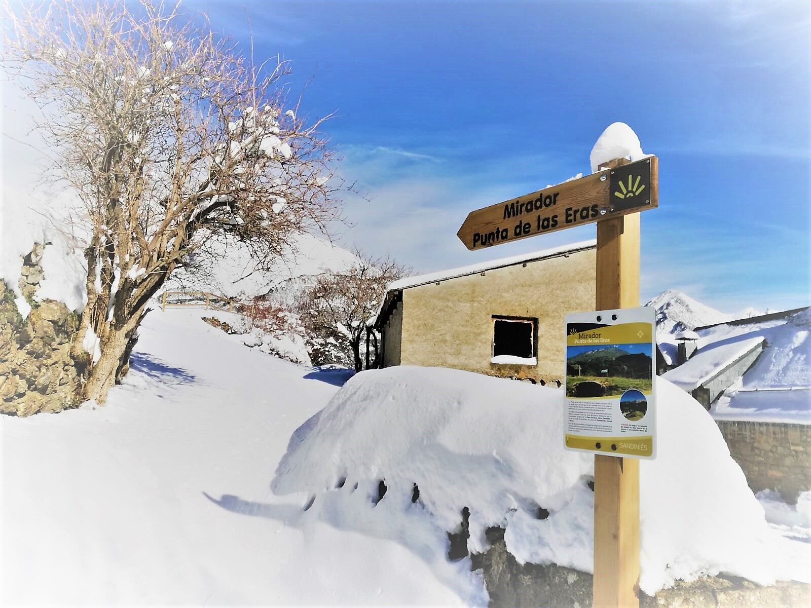 El mirador, desde el que se puede contemplar una espectacular vista de 360º del valle de Tena, se ubica junto al pueblo, en la denominada punta de las Eras. Allí se ha colocado una valla tejana de madera y dos mesas interpretativas en las que se detallan los numerosos picos que se divisan desde este punto –Sandiniés se encuentra a 1.294 metros de altitud-. El mirador se encuentra justo encima de un búnker de hormigón, construido en los años 40 del pasado siglo y que formaba parte del sistema defensivo pirenaico conocido como Línea P.