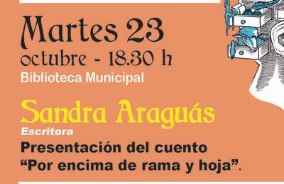 En el marco del Ciclo FLA, previo a la Feria del Libro Aragonés, este martes, día 23 de octubre, a las 18.30h, en la Biblioteca Municipal, Sandra Araguás presenta su cuento ‘Por encima de rama y hoja”.