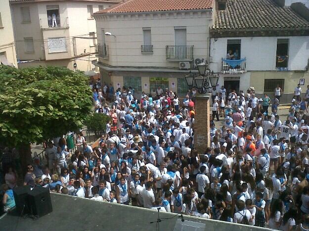 Después, el alcalde, Francisco Villellas, varios miembros de la Comisión de Fiestas y las Mairalesas, colocaban a los 29 niños nacidos entre el 1 de septiembre de 2013 y el 30 de agosto de 2014, la pañoleta de las Fiestas. Y como colofón de la tarde festiva, se lanzaba el tradicional cohete anunciador desde el balcón del Ayuntamiento de la capital monegrina entre gritos de "viva San Antolín" y "viva Sariñena", a cargo del presidente del club, Juan Tella y del entrenador del equipo de Primera Regional José Antonio López.