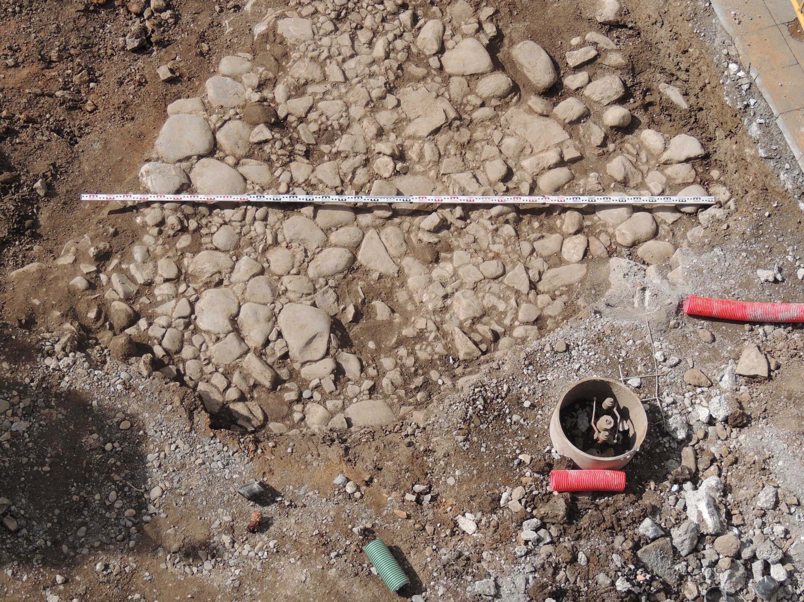 “Para lo que es la arqueología romana en Jaca son unos restos bastante sorprendentes. Suele ser una arqueología algo pobre y hemos encontrado lo que sería el suelo de una de las calles de la Jaca romana. No sabemos si es central o periférica, tenemos que situarla en el plano y ver sus dimensiones porque en algunos puntos tiene una anchura superior a 4 metros, lo que no es normal”. De esta forma valora los restos encontrados la arqueóloga Julia Justes, que sitúa la construcción de esta calzada en el siglo I y sospecha que fue usada hasta el siglo III o IV, “cuando por causas que no conocemos se abandonó”.