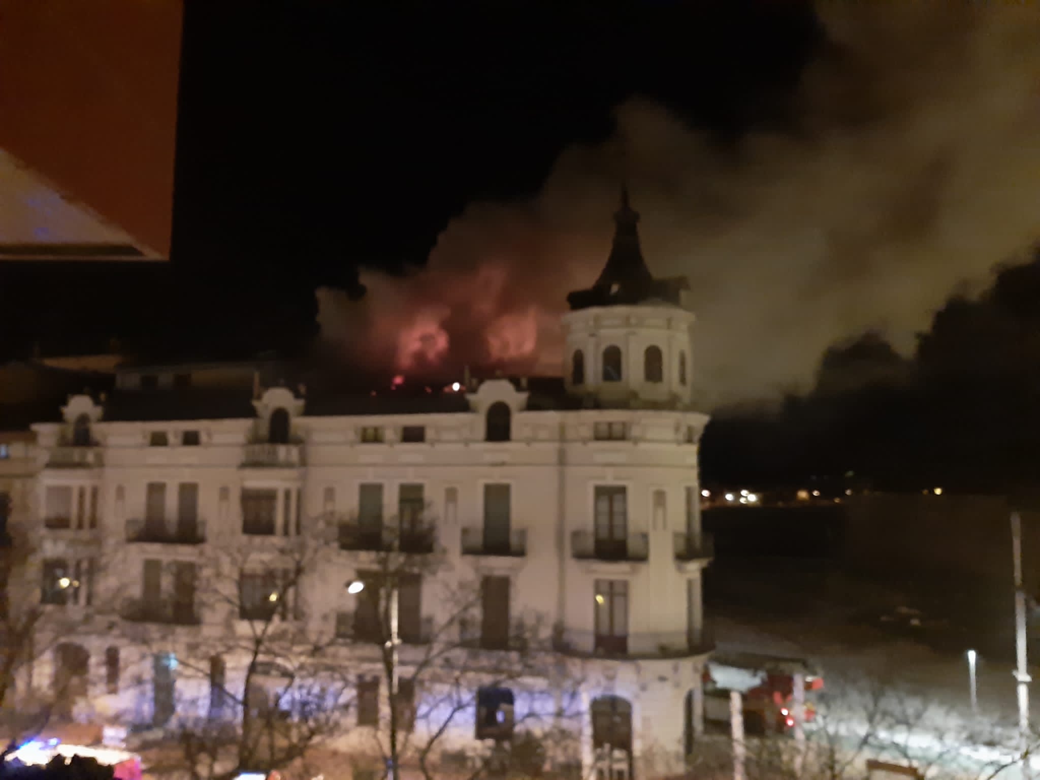 Según se puede apreciar en los vídeos que rápidamente se han enviado por las redes, el fuego se originaba en la parte trasera, la más cercana a la Ciudadela, en la parte superior del edificio. Las llamas calcinaban la parte del tejado.