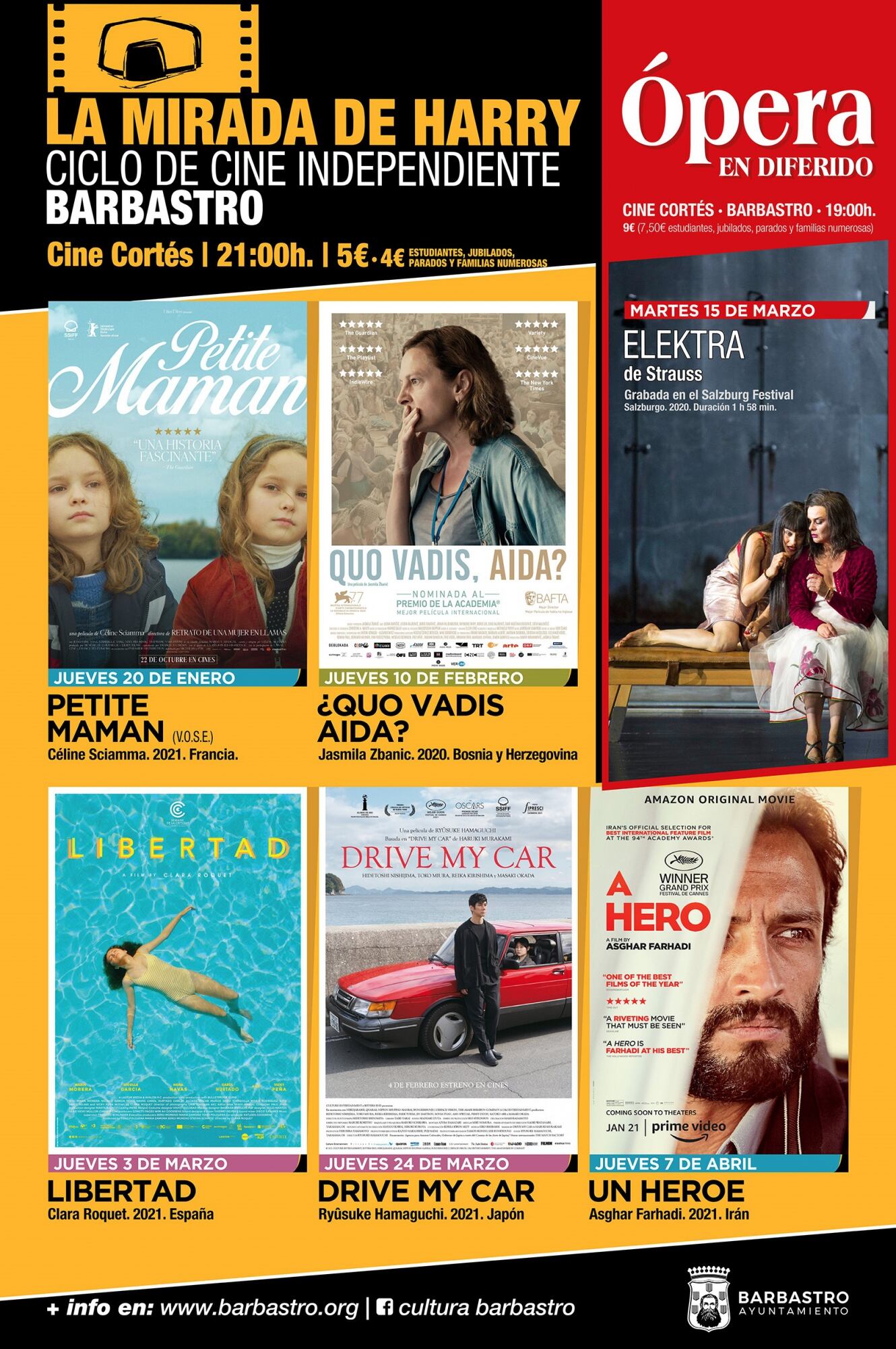 La programación del Ciclo de Cine Independiente La Mirada de Harry continuará durante el segundo trimestre de 2022 y, como avance, el 7 de abril se proyectará Un héroe, del iraní Asghar Farhadi. Recibió el gran premio del jurado en el Festival de Cannes y los premios a mejor película extranjera y guión original en los National Board of Review (NBR), entre otras nominaciones.