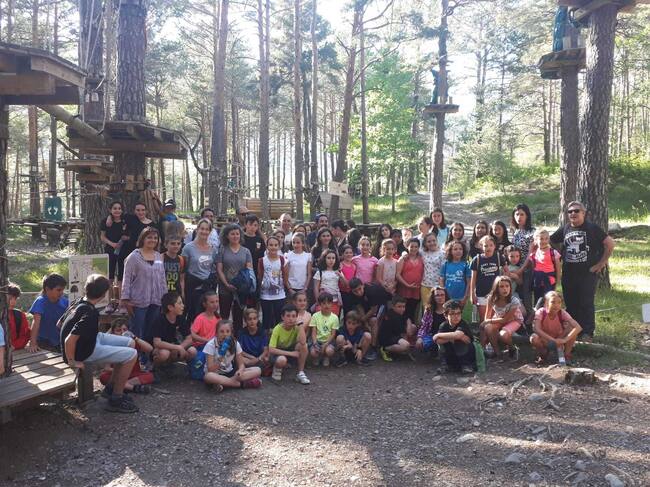 Por la tarde, después de la comida en las escuelas de Biescas, los participantes han conocido la localidad y el parque de las tirolinas. A esto se une en colaboración con la comarca una tarde deportiva en Biescas.