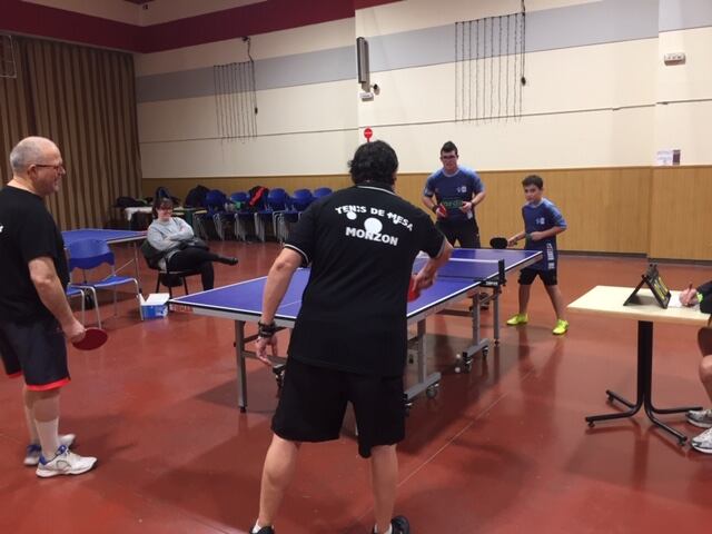 Ya por la tarde, en el gimnasio del CEIP Monzón3, se jugaron los partidos de la Liga Territorial Aragonesa de Tenis de Mesa “A” entre los equipos del Tenis de Mesa Monzón y Grupo Tarema-Utebo TM. Los partidos se iniciaron con gran expectación e ilusión de los espectadores montisonenses por la esperada calidad de los encuentros, ya que el club local se enfrentaba el mejor equipo de la liga, con jugadores de gran calidad que juegan en liga nacional.