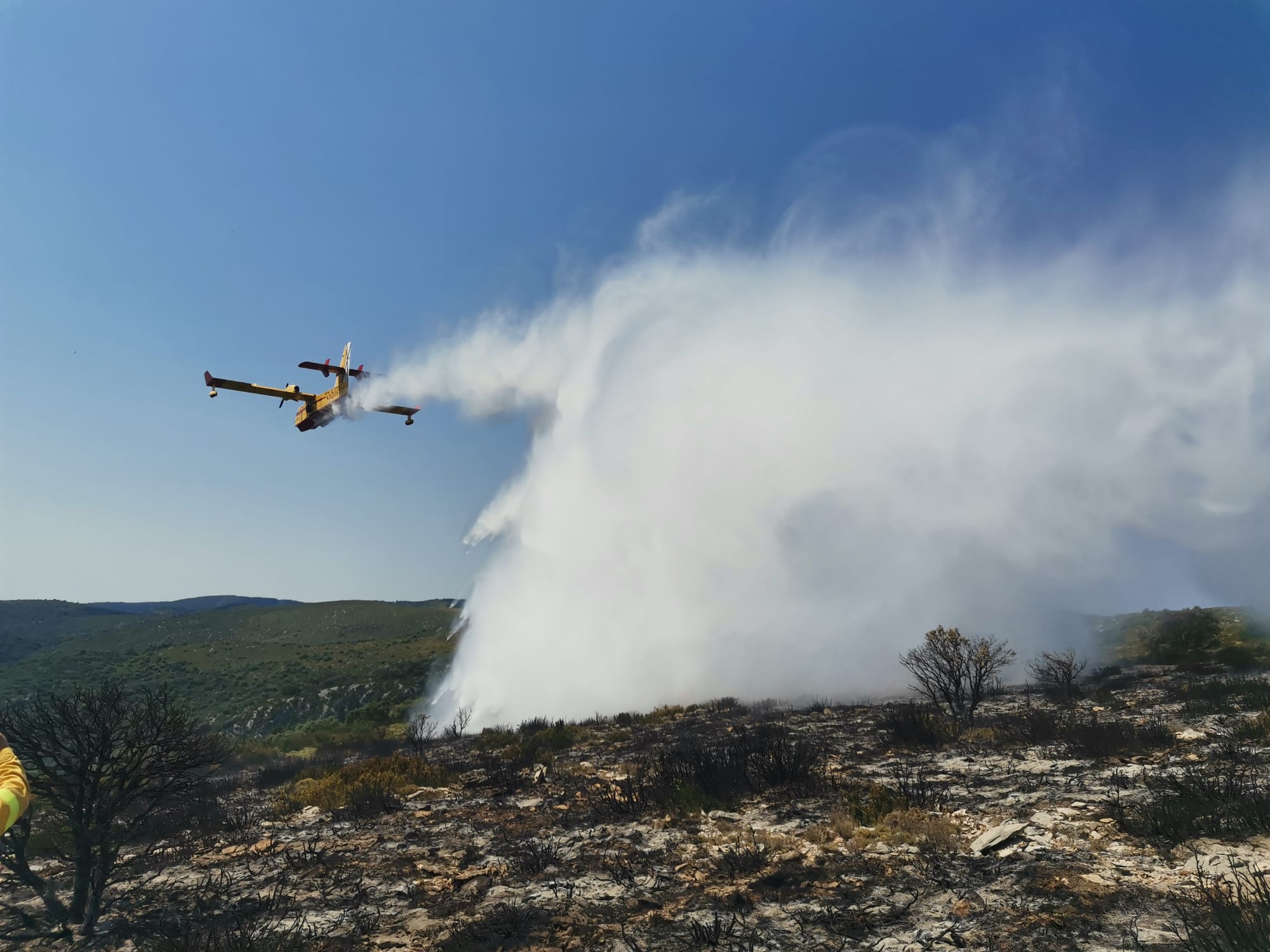 A primeras horas de la mañana se acercaba a la zona un primer operativo que evaluaba la situación, solicitando el refuerzo de los equipos de extinción y la participación de un hidroavión del Gobierno de Aragón, para controlar este foco y que no se siga propagando por esta zona de monte bajo y erizón situada entre los municipios de Bárcabo y Bierge.